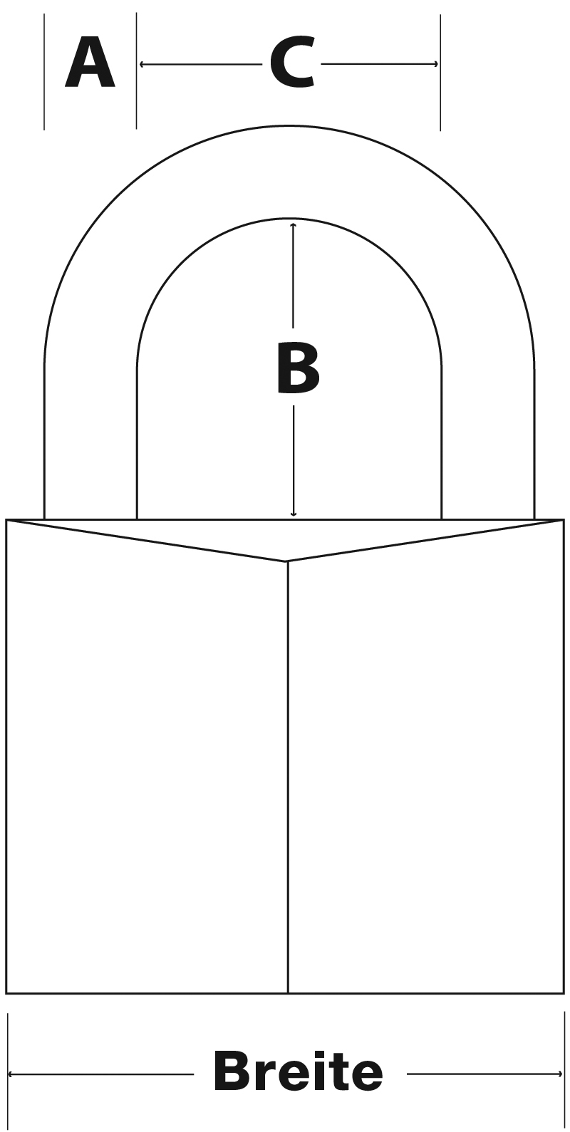 Bügelmasse: A: 4 mm B: 11 mm C: 6 mm